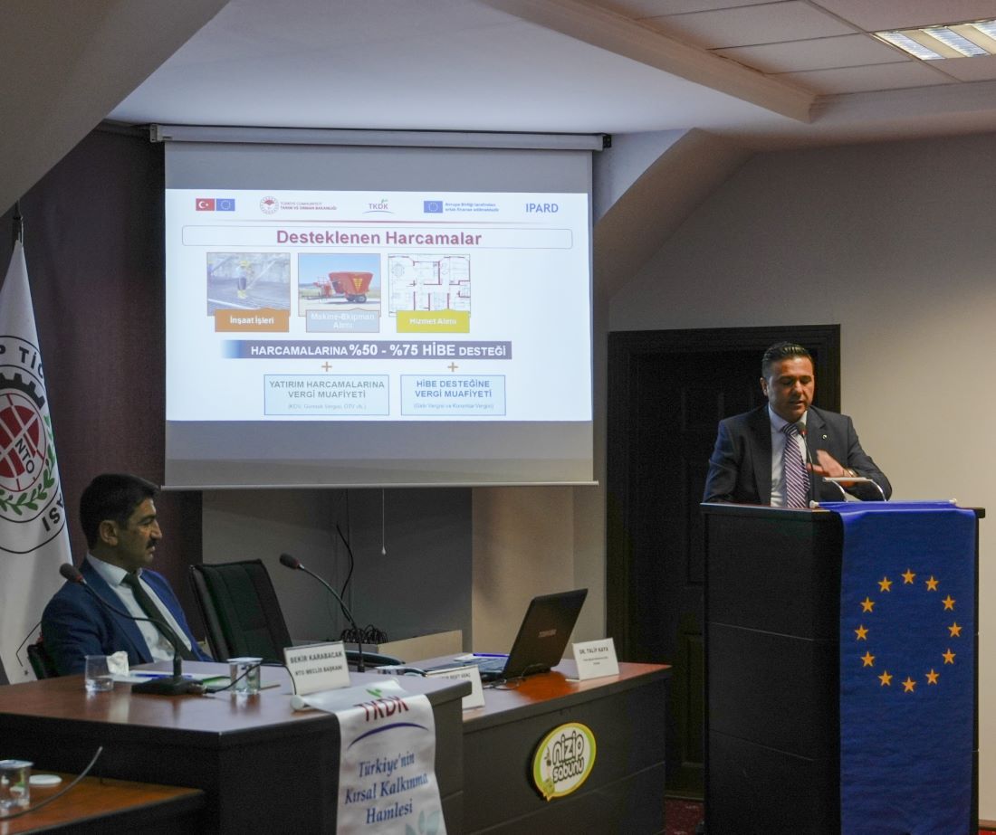 Tarım ve Orman Bakanlığı’nın ilgili kuruluşu Tarım ve Kırsal Kalkınmayı Destekleme Kurumu (TKDK) tarafından yürütülen IPARD III Programı 10. Başvuru Çağrısı kapsamındaki tanıtım ve bilgilendirme toplantısı, Nizip Ticaret Odası (NTO) ile TKDK Gaziantep Ofisi iş birliğinde Odamızda gerçekleştirildi.