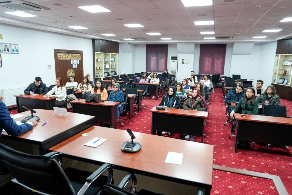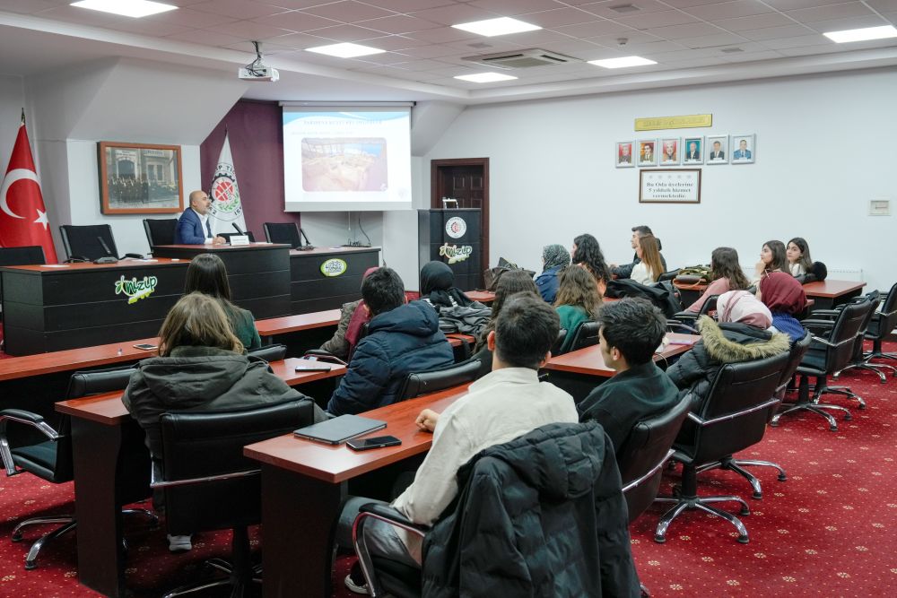 Açılış konuşmasında Mahmut Polat, kamu–üniversite–sanayi iş birliğinin yerel kalkınma açısından önemli bir örnek oluşturduğunu belirterek, öğrencilere Odamız ve ilçemizin ekonomik yapısına ilişkin kapsamlı bilgiler aktardı. Polat; Nizip’in Adana–Gaziantep–Şanlıurfa karayolu üzerinde yer alan güçlü lojistik konumuna, üretim altyapısına ve yatırım potansiyeline dikkat çekti.