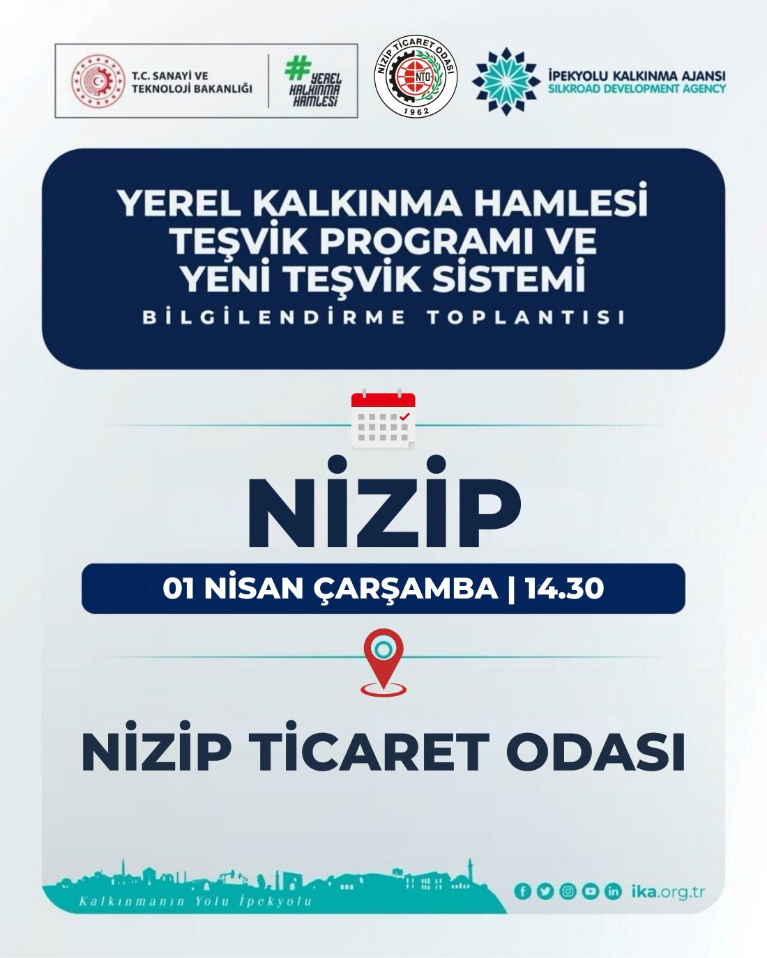 Sanayi ve Teknoloji Bakanlığı tarafından, Türkiye’nin bölgesel kalkınma öncelikleri doğrultusunda 81 ilde uygulamaya konulan Yerel Kalkınma Hamlesi Teşvik Programı ve Yeni Teşvik Sistemi’nin tanıtımı, İpekyolu Kalkınma Ajansı tarafından, Odamız ev sahipliğinde 01 NİSAN ÇARŞAMBA günü saat 14.30'da gerçekleştirilecektir.