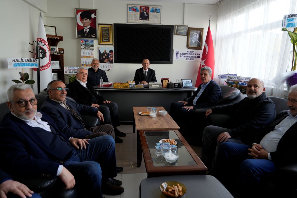 Ziyaretler kapsamında; Lokantacı ve Kahveciler Odası Başkanı Hüseyin Ekmekçi, Berberler ve Kuaförler Odası Başkanı Mustafa Doğan, Nizip Terziler ve Benzerleri Esnaf ve Sanatkârlar Odası Başkanı Mehmet Karakuş, Elektrikçiler ve Elektronikçiler Odası Başkanı Süleyman Çetin, Fırıncılar Odası Başkanı Abdullah Yılmaz, Emekliler Derneği Başkanı Abdullah Aslan, Kasaplar Odası Başkanı Osman Şimşek, Bakkallar ve Sebzeciler Odası Başkanı Mustafa Canpolat, Marangozcular ve Mobilyacılar Odası Başkanı Nedim Çalışkan, Şoförler ve Otomobilciler Odası Başkanı Musa Kılıçparlar ile Madeni Sanatkârlar Odası Başkanı Hüseyin Kök’e yeni dönemlerine ilişkin tebrikler iletilerek başarı temennisinde bulunuldu.